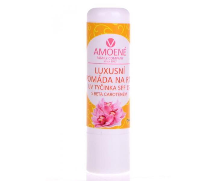 Balsam do ust Amoené służy do ochrony ust przed niekorzystnym wpływem warunków atmosferycznych. Bardzo dobrze się rozprowadza, pomaga w walce ze spierzchniętymi ustami oraz goi drobne rany. Sprawia, że usta są miękkie i jędrne. Balsam z beta karotenem zawiera filtr SPF 15 z pantenolem, który chroni przed promieniami UV i ma lekko żółty odcień. Jest odpowiedni na ekstremalne warunki pogodowe zarówno latem, jak i zimą.