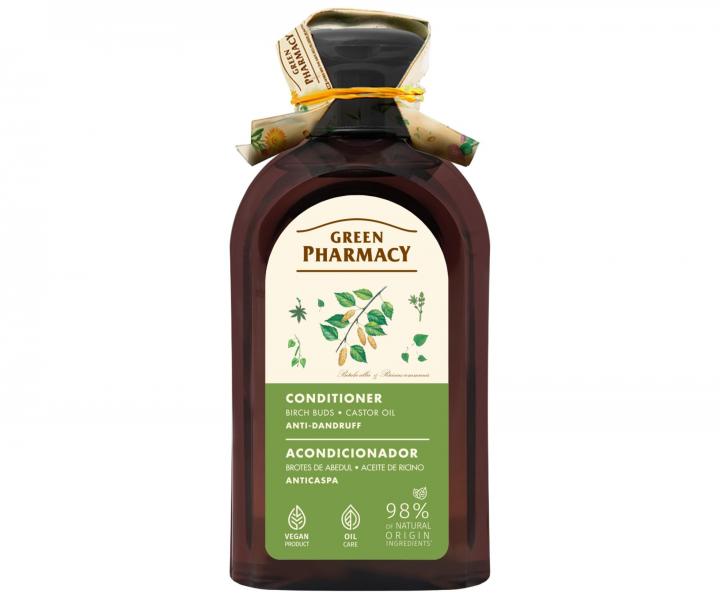 Odżywka Green Pharmacy przeciwłupieżowa zawiera pąki brzozy i olejek rycynowy. Zapobiega swędzeniu skóry i przeciwdziała przesuszeniu skóry głowy. Ułatwia rozczesywanie włosów i nadaje im połysk.