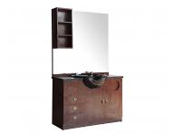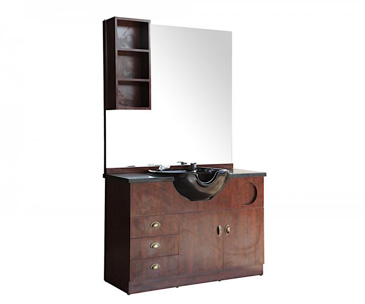 Barber konsoleta Sibel Barburys Mustang o eleganckim i nowoczesnym designie to niezbędny element każdego salonu barberskiego. Konsoleta z lustrem i ceramiczną umywalką w kolorze czarnym z typowym wycięciem na kark, posiada wiele praktycznych schowków. Blat konsolety wykonany jest z czarnego kamienia, a w górnej części lustra znajdują się półki na ręczniki.