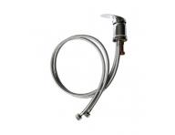 Bateria mieszakowa wymienna chrom połysk z uchwytem do umywalki Detail. Bateria posiada 2 wężyki ze stali nierdzewnej do podłączenia ciepłej i zimnej wody. Bateria może być również montowana do innych umywalek, jeśli odpowiada wymaganym wymiarom.