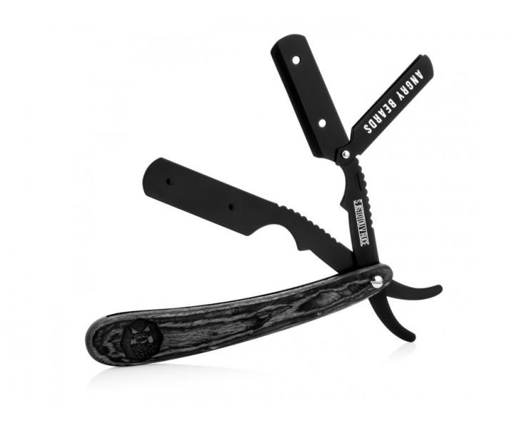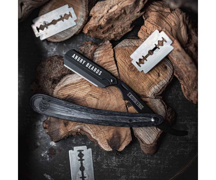 Brzytwa do brody Angry Beards Shavette Garrigue jest idealna dla mężczyzn lubiących funkcjonalność i styl. Rękojeść wykonana została z wodoodpornego drewna pakka zaś ramię maszynki powstało ze stali pokrytej powłoką antykorozyjną. W zestawie znajduje się etui z wegańskiej skóry.
