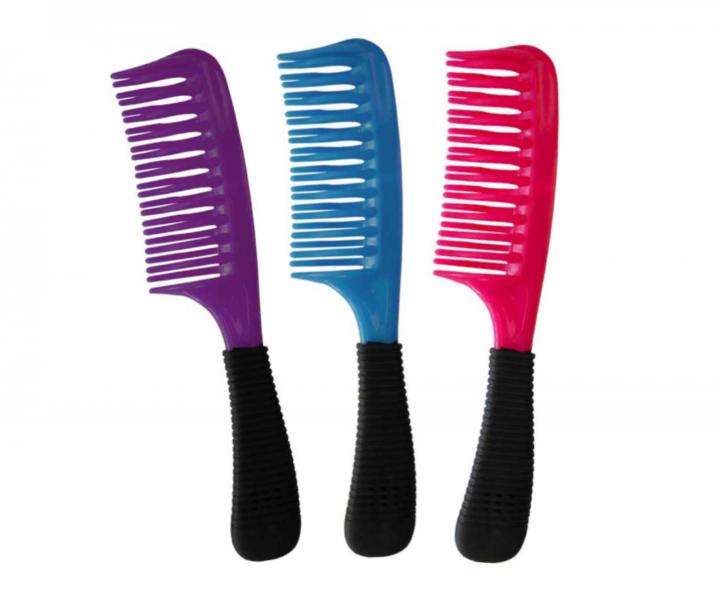 Klasyczny duży grzebień do włosów Duko z rączką, jest lekki, elastyczny i ma gumowaną rączkę zapewniającą wygodę użytkowania. Jest to doskonałe narzędzie, szczególnie do użytku domowego, odpowiednie do wszystkich rodzajów włosów. Zęby w dwóch rzędach są gładko wykończone, aby masować skórę głowy podczas czesania. Materiał: plastik Kolor: niebieski... więcej »