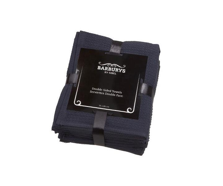 Ręczniki dwustronne Barburys nadają się zarówno do użytku w salonie fryzjerskim, jak i w domu. Jedna strona służy do wycierania, strzyżenia i golenia, a druga miękka strona do osuszania. Ręcznik jest wykończony lamówką.