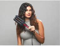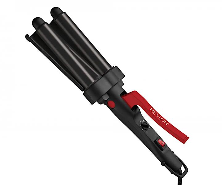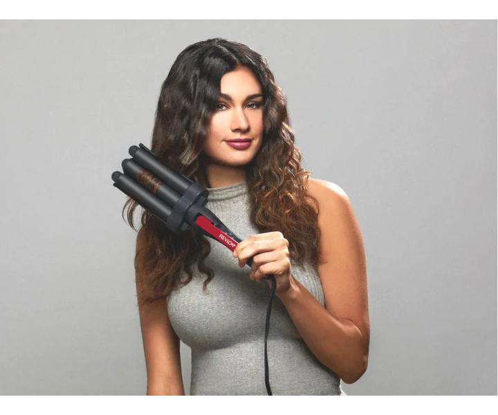 Stwórz szybko i łatwo piękne plażowe fale dzięki potrójnej falownicy do włosów Revlon Wave Master. Falownica posiada trzy wałki o powierzchni będącej połączeniem ceramiki i turmalinu, co sprawia, że jest łagodniejsza dla włosów, minimalizuje uszkodzenia i pozostawia je jedwabiste i lśniące. Unikalny szeroki wałek centralny pozwala uzyskać naturalnie wyglądające fale.Falownica ma do 30 ustawień temperatury z maksymalną temperaturą do 190°C, dzięki czemu nadaje się do wszystkich rodzajów włosów. Obsługę ułatwiają chłodne końcówki wałków grzejnych, a także obrotowy przewód, który zapobiega splątywaniu się podczas stylizacji. Podczas przechowywania lokówki lub w czasie podróży przydatna jest funkcja zablokowania urządzenia w pozycji zamkniętej dzięki pierścieniowi zabezpieczającemu na końcu rękojeści.