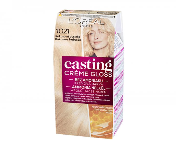 Farba bez amoniaku Loréal Paris Casting Créme Gloss zapewnia intensywne, promienne odcienie aż do 28 myć. Gama naturalnych kolorów rozświetli włosy i nada im wyjątkowych refleksów. Optymalnie pokrywa pierwsze siwe włosy i wzmacnia włókno włosa od nasady aż po same końce. Formuła wzbogacona o mleczko pszczele sprawia, że włosy są do 4 razy bardziej lśniące. Dzięki kremowej konsystencji kolor nie spływa, aplikacja jest łatwa, a na dodatek ma delikatny owocowy zapach. Farba jest odpowiednia do wszystkich rodzajów włosów - z pasemkami, farbowanych i naturalnych.