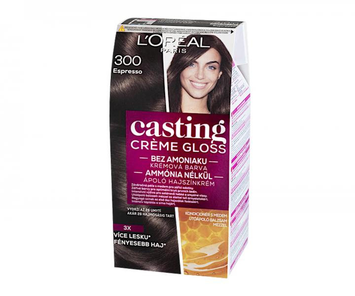 Farba bez amoniaku Loréal Paris Casting Créme Gloss zapewnia intensywne, promienne odcienie aż do 32 myć. Gama naturalnych kolorów rozświetli włosy i nada im wyjątkowych refleksów. Optymalnie pokrywa pierwsze siwe włosy i wzmacnia włókno włosa od nasady aż po same końce. Formuła wzbogacona o mleczko pszczele sprawia, że włosy są do 4 razy bardziej lśniące. Dzięki kremowej konsystencji kolor nie spływa, aplikacja jest łatwa, a na dodatek ma delikatny owocowy zapach. Farba jest odpowiednia do wszystkich rodzajów włosów - z pasemkami, farbowanych i naturalnych.