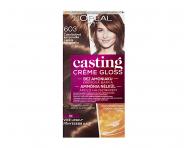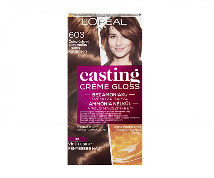 Farba bez amoniaku Loréal Paris Casting Créme Gloss zapewnia intensywne, promienne odcienie aż do 32 myć. Gama naturalnych kolorów rozświetli włosy i nada im wyjątkowych refleksów. Optymalnie pokrywa pierwsze siwe włosy i wzmacnia włókno włosa od nasady aż po same końce. Formuła wzbogacona o mleczko pszczele sprawia, że włosy są do 4 razy bardziej lśniące. Dzięki kremowej konsystencji kolor nie spływa, aplikacja jest łatwa, a na dodatek ma delikatny owocowy zapach. Farba jest odpowiednia do wszystkich rodzajów włosów - z pasemkami, farbowanych i naturalnych.