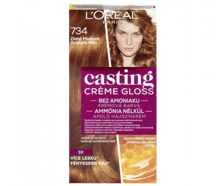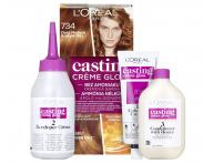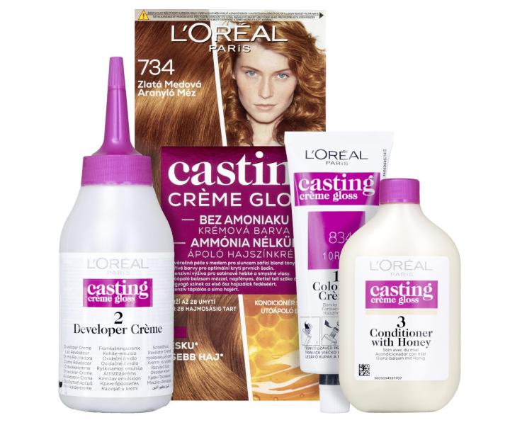 Farba bez amoniaku Loréal Paris Casting Créme Gloss zapewnia intensywne, promienne odcienie aż do 32 myć. Gama naturalnych kolorów rozświetli włosy i nada im wyjątkowych refleksów. Optymalnie pokrywa pierwsze siwe włosy i wzmacnia włókno włosa od nasady aż po same końce. Formuła wzbogacona o mleczko pszczele sprawia, że włosy są do 4 razy bardziej lśniące. Dzięki kremowej konsystencji kolor nie spływa, aplikacja jest łatwa, a na dodatek ma delikatny owocowy zapach. Farba jest odpowiednia do wszystkich rodzajów włosów - z pasemkami, farbowanych i naturalnych.