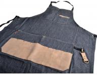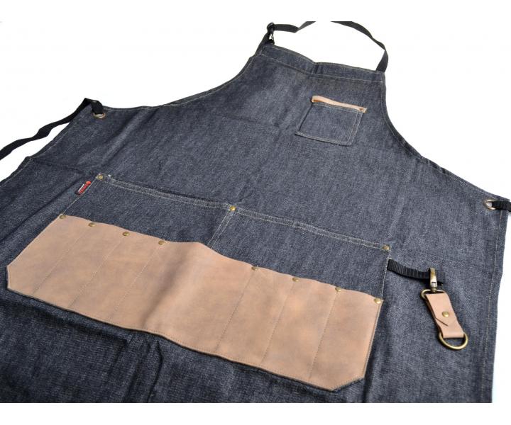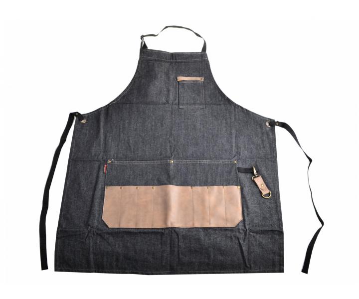 Profesjonalny męski fartuch fryzjerski Hairway Barber o stylowym wyglądzie. Fartuch posiada regulowany pasek na szyję, który można dowolnie dopasować. Dziesięć różnych kieszeni z przodu fartucha idealnie nadaje się do przechowywania na przykład nożyczek, grzebieni, brzytew lub innych akcesoriów. Fartuch stanowi połączenie dżinsowego materiału z elementami sztucznej skóry.