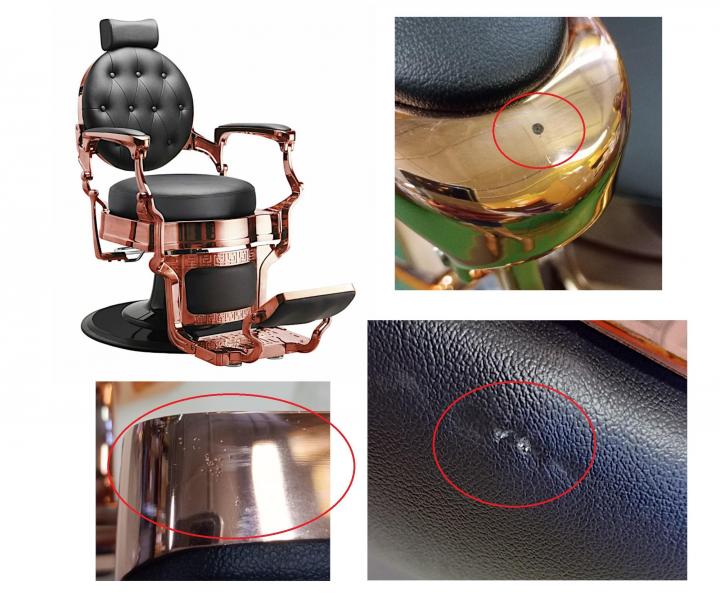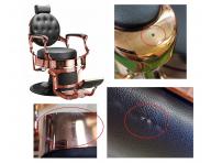 Produkt posiada niewielkie wady powierzchniowe – rysy i uszkodzenia powierzchni w różnych miejscach metalowej konstrukcji oraz uszkodzoną skórę ekologiczną na oparciu. Są to wyłącznie wady kosmetyczne, które nie mają wpływu na funkcjonalność i użytkowanie fotela. Zdjęcia mają charakter poglądowy, każdy fotel ma inne wady. Luksusowy fotel fryzjer... więcej »