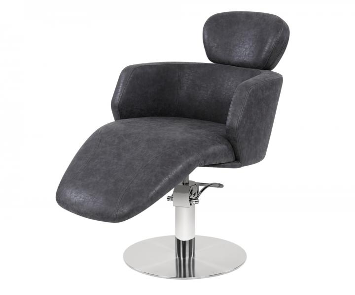 Zapewnij swoim klientom wygodę i komfort podczas dłuższego korzystania z usług salonu dzięki fotelowi fryzjerskiemu Sibel Ariana. Luksusowy i elegancki fotel w kolorze ciemnoszarym został zaprojektowany z myślą o maksymalnym komforcie klienta. Dzięki możliwości regulacji wysokości fotela za pomocą pompy hydraulicznej, oraz idealnej wysokości oparcia, fotel umożliwia również fryzjerowi łatwy dostęp do włosów klienta. Fotel stoi na solidnej okrągłej chromowanej podstawie o średnicy 50 cm.
