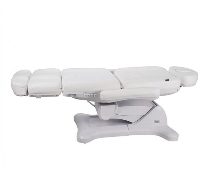 Komfortowy, elektrycznie regulowany fotel kosmetyczny SilverFox z otworem na twarz oraz zdejmowanym podgłówkiem. Fotel charakteryzuje wyjątkowy design i wysoki komfort użytkowania. Posiada 3 silniki, dzięki którym można automatycznie ustawić dowolne pozycje. Fotel obraca się o 240° wokół własnej osi, zapewniając więcej miejsca do pracy nawet w najmniejszych pomieszczeniach.