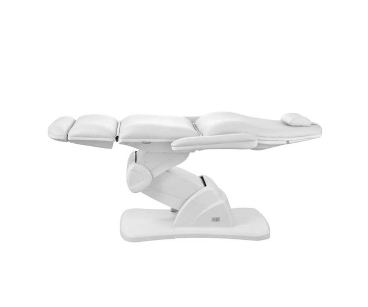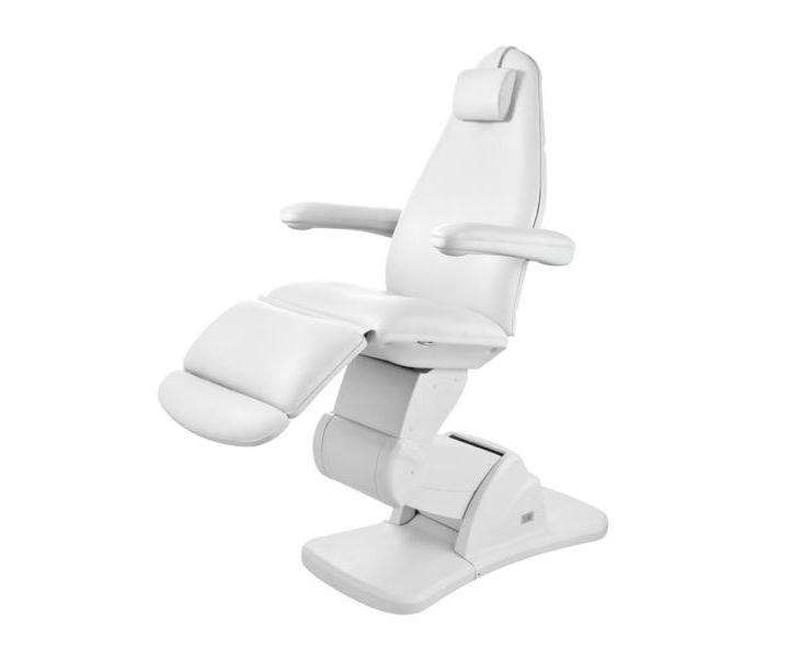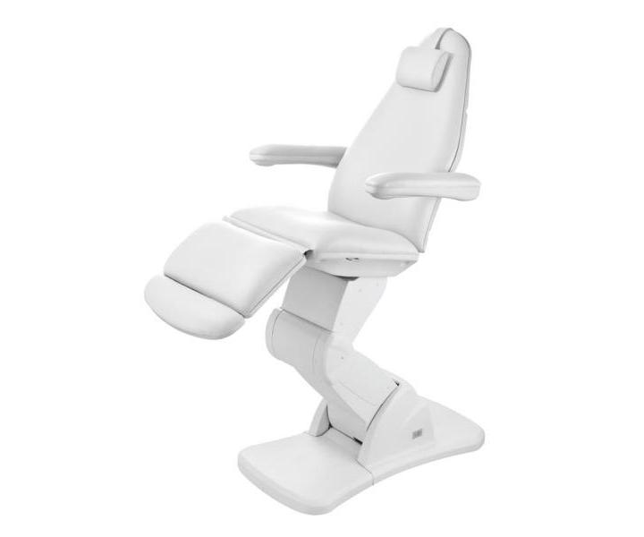 Elektrycznie sterowany fotel kosmetyczny zapewniający wysoki komfort użytkowania. Fotel posiada 3 silniki, dzięki którym automatycznie można ustawić poszczególne pozycje. Fotel można ustawić w pozycji całkowicie poziomej. Oparcie, podnóżek oraz wysokość są sterowane elektrycznie.