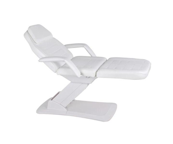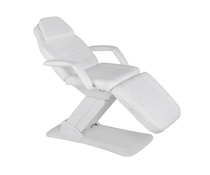 Elektrycznie sterowany fotel kosmetyczny Weelko Ster z otworem na twarz i zdejmowaną poduszką zagłówka. Fotel posiada 3 silniki, dzięki którym automatycznie można ustawić poszczególne pozycje.