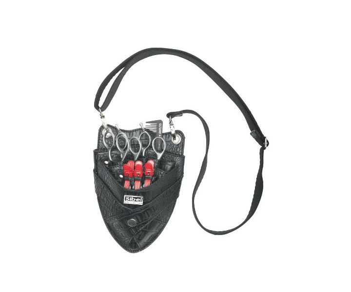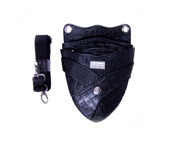 Profesjonalna kabura na nożyczki Sibel Boy 7 z wysokiej jakości skóry ekologicznej z wzorem krokodyla ma trzy większe przegrody i siedem mniejszych przegródek na nożyczki, w tym regulowany pasek wokół talii. Kabura ma elegancki design i jest bardzo pojemna, co z pewnością doceni każdy fryzjer.