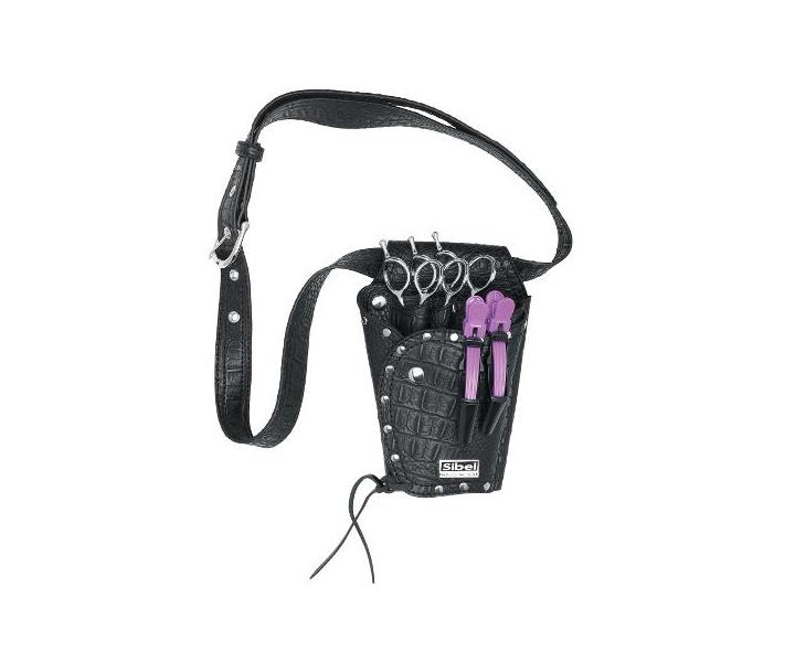 Profesjonalna kabura Sibel wykonana z wysokiej jakości skóry syntetycznej z wzorem krokodyla, przeznaczona na nożyczki, posiada jedną większą przegrodę i pięć mniejszych przegródek oraz regulowany pasek wokół pasa. Główna przegroda kabury jest zapinana na guzik i sznurek ze skóry syntetycznej. Małe przegródki są odpinane, dzięki czemu można wybrać liczbę potrzebnych kieszeni. Kabura ma atrakcyjny design i jest bardzo pojemna, co z pewnością zachwyci każdego fryzjera.