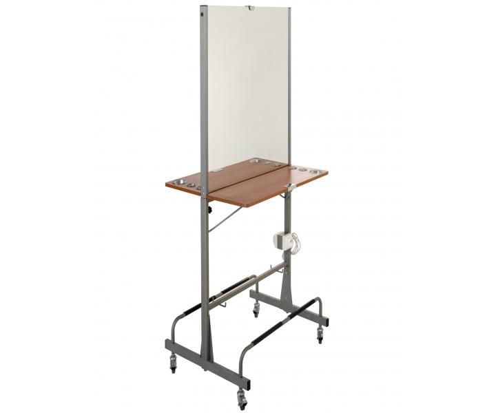 Konsoleta fryzjerska dwustronna Sibel S-Cool jest idealna dla fryzjerów-praktykantów. Z każdej strony posiada lustro, półkę, podnóżek, uchwyt na suszarkę, prostownicę lub lokówkę. Do konsolety fryzjerskiej można przymocować główkę treningową. Konsoleta ma kółka, dzięki czemu można ją łatwo przemieszczać.