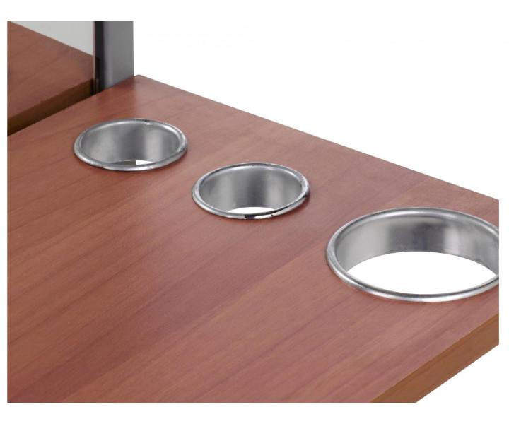 Konsoleta fryzjerska dwustronna Sibel S-Cool jest idealna dla fryzjerów-praktykantów. Z każdej strony posiada lustro, półkę, podnóżek, uchwyt na suszarkę, prostownicę lub lokówkę. Do konsolety fryzjerskiej można przymocować główkę treningową. Konsoleta ma kółka, dzięki czemu można ją łatwo przemieszczać. Kolor: brązowa płyta fornirowana Właściwoś... więcej »