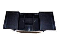 Kufer segmentowy na kółkach Hairway w kolorze czarnym ma dwie środkowe sekcje i pokrywę. Wewnątrz kufra znajdują się szuflady i kieszenie. Posiada on powierzchnię odporną na ścieranie oraz wzmocnione dno i narożniki, dzięki czemu można go bezpiecznie zabrać w każde miejsce. Nośność kufra wynosi 18 kg. Kolor: czarny Właściwości: - kufer segmentowy... więcej »