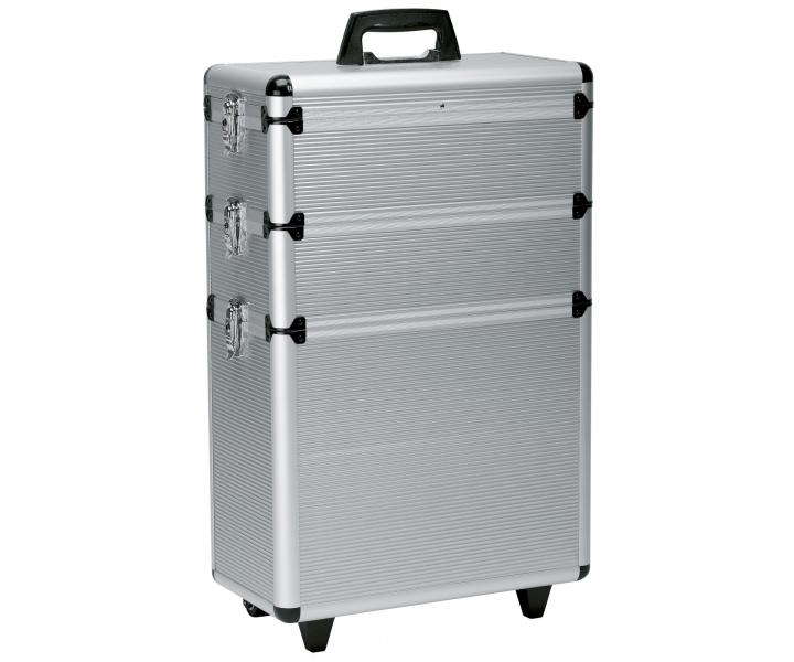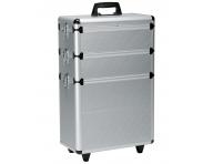 Kufer fryzjerski na kółkach Original Best Buy Alu ma dwie komory środkowe oraz trzecią z pokrywą. Kufer jest przestronny i ma praktyczny teleskopowy uchwyt. Może być wykorzystywany do przechowywania różnych narzędzi fryzjerskich i kosmetycznych. Dzięki swojej konstrukcji można go wszędzie zabrać ze sobą.