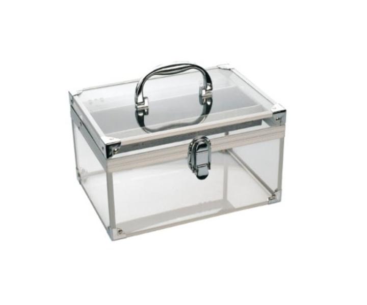 Profesjonalny kufer fryzjerski i kosmetyczny Sibel otwierany od góry. Wykonany z przeźroczystego pleksiglasu, w aluminiowej ramie, posiada wzmocnione narożniki chroniące przed uszkodzeniami. Kufer nie jest zamykany. Na górze kufra znajduje się praktyczny uchwyt ułatwiający przenoszenie. Kolor: przeźroczysty Właściwości: - profesjonalny kufer fryz... więcej »