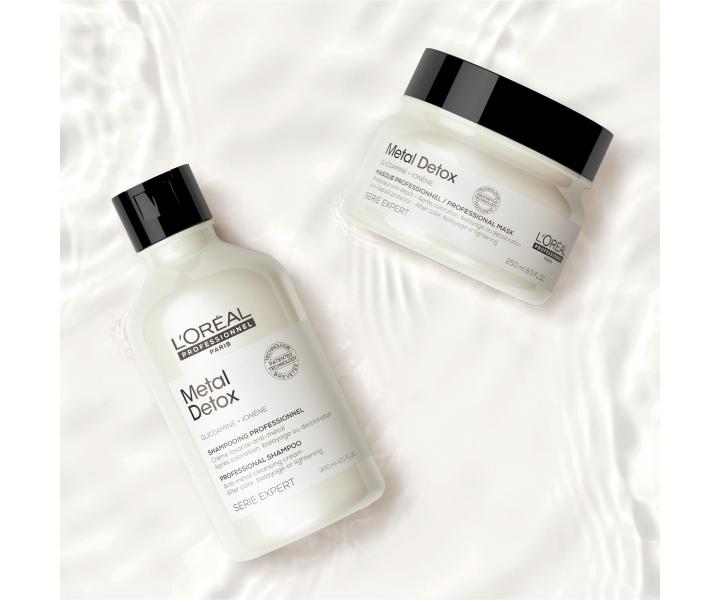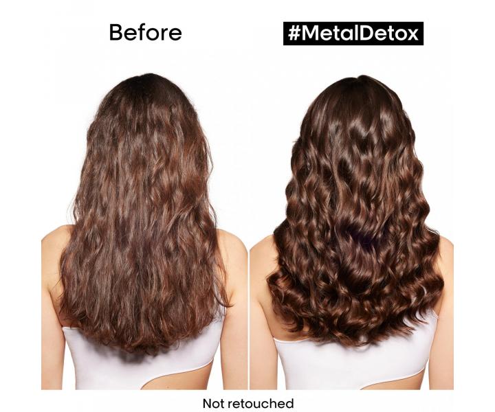Maska ochronna L'Oréal Professionnel Serie Expert Metal Detox chroni włókno włosa przed osadzaniem się cząsteczek metalu po każdej koloryzacji, balejażu lub rozjaśnianiu. Pozwala zachować żywy i intensywnie lśniący kolor. Włosy są natychmiast gładsze, bardziej miękkie i odżywione. Metale we włóknie włosa stwarzają ryzyko złamania i negatywnie wpływają na rezultaty koloryzacji podczas farbowania, balejażu i rozjaśniania. Poziom metali we włosach różni się w zależności od porowatości włosów i jakości wody, jakiej używamy. Opatentowana technologia została wzbogacona o Glicoaminę, cząsteczkę wystarczająco małą, aby przeniknąć do włókna włosa i zneutralizować znajdujące się tam metale. Seria Metal Detox zapewnia profesjonalną ochronę podczas koloryzacji, balejażu lub rozjaśniania, zmniejszając ryzyko łamliwości włosów o 87%.