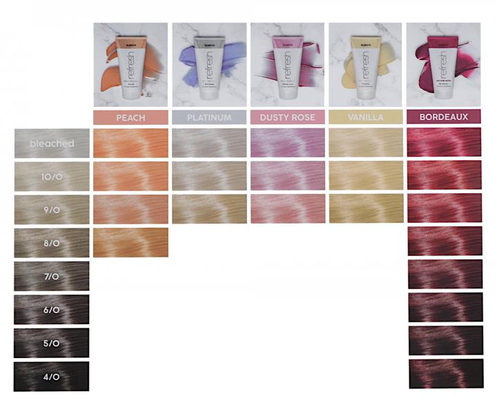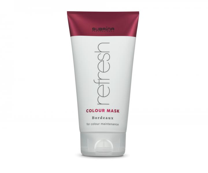 Odżywcza maska Subrina Professional Refresh Colour Mask Bordeaux zawiera tymczasowe pigmenty, dzięki czemu można z nią eksperymentować i tworzyć stylowe fryzury. Maska rewitalizuje włosy, zapewniając im głębokie odżywienie i nawilżenie dzięki zawartości oleju kokosowego i masła mango. Eliminuje puszenie się włosów, nadaje im jedwabistą miękkość i olśniewający połysk. Efekty koloryzacji utrzymują się od 3 do 5 myć w zależności od oryginalnego koloru i kondycji włosów. Maska najlepiej sprawdza się na włosach rozjaśnianych. Maska z tymczasowymi pigmentami wydobywa i podkreśla również istniejący kolor. Dostępna jest w 5 odcieniach (platynowy, waniliowy, brzoskwiniowy, jasnoróżowy, bordowy), można z nią również eksperymentować - odcienie można mieszać ze sobą, tworząc własny odcień. Maska nie pokrywa siwych włosów, ale nadaje im lekki odcień. Można ją łatwo zmyć z włosów szamponem. Bordo to żywy, głęboki odcień czerwieni, który jest idealny dla brunetek. Bardzo intensywnie wygląda na włosach blond i rozjaśnianych. Trwałość koloru bordowego jest znacznie dłuższa niż innych odcieni.