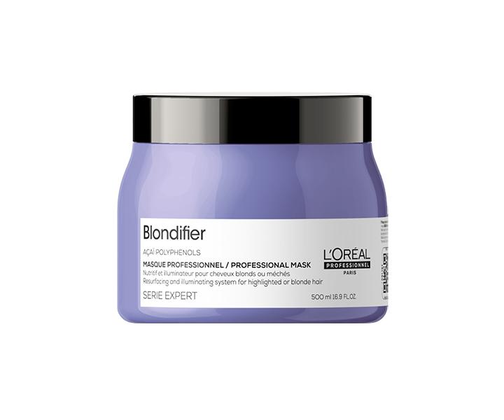 Maska rozświetlająco-regenerująca L'Oréal Professionnel Serie Expert Blondifier do wszystkich rodzajów włosów blond. Pomaga podkreślić kolor włosów blond, zapewniając im odżywienie i promienny połysk. Zawiera polifenole pochodzące z jagód acai, które mają właściwości antyoksydacyjne. Po użyciu włosy są natychmiast miękkie i bardzo łatwo się rozczesują. Regeneruje włókno włosa, odżywia, wygładza i podkreśla blond kolor włosów.