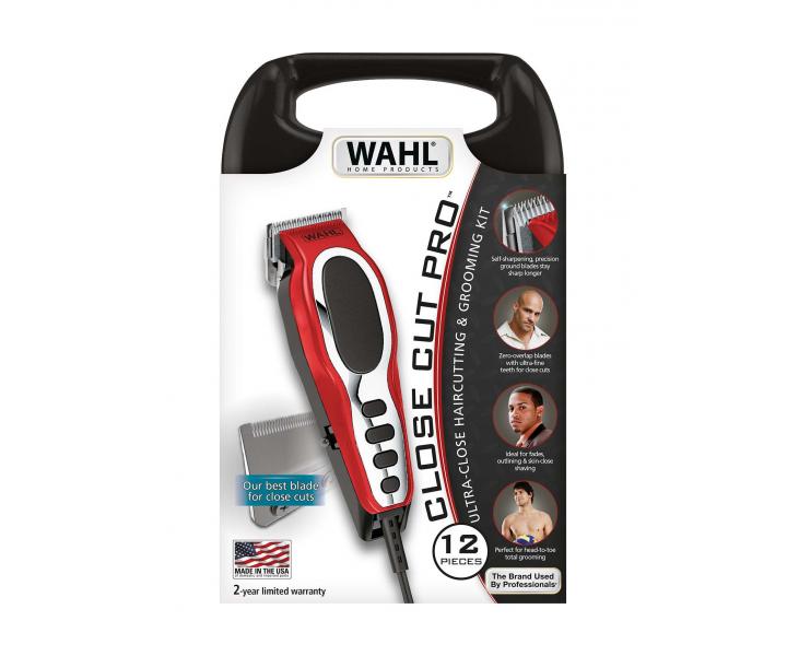 Trymer do włosów i brody Wahl Close Cut 79111-2016 z głowicą tnącą ze stali wysokowęglowej. Głowica tnąca o minimalnej wysokości cięcia 0,6 mm i szerokości 46 mm. W zestawie 6 wymiennych nasadek (1,5 mm, 3 mm, 4,5 mm, 6 mm, 10 mm, 13 mm), grzebień, zaślepka głowicy tnącej, etui podróżne, szczoteczka do czyszczenia i olejek.