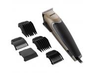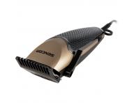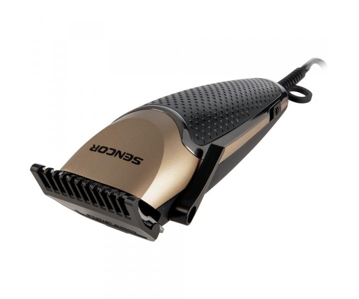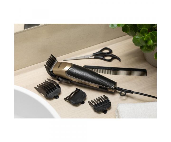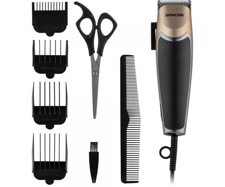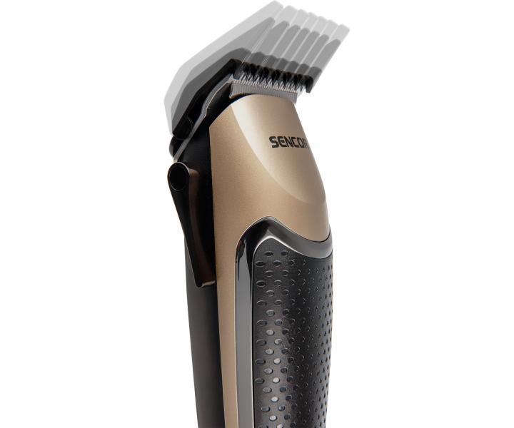 Trymer do w³osów Sencor gwarantuje wygodne przycinanie w³osów dziêki ostrzu ze stali nierdzewnej o szerokoœci 45 mm. Wysokoœæ ciêcia mo¿na regulowaæ w zakresie od 1 do 3 mm za pomoc¹ dŸwigni blokuj¹cej z boku trymera. Dodatkowo wysokoœæ ciêcia mo¿na zmieniaæ za pomoc¹ plastikowych nasadek 3 mm, 6 mm, 9 mm i 12 mm. Dziêki ergonomicznemu kszta³towi trymer wygodnie le¿y w d³oni. Oprócz plastikowych nasadek w zestawie znajduje siê równie¿ grzebieñ, no¿yczki, szczoteczka do czyszczenia i olej.