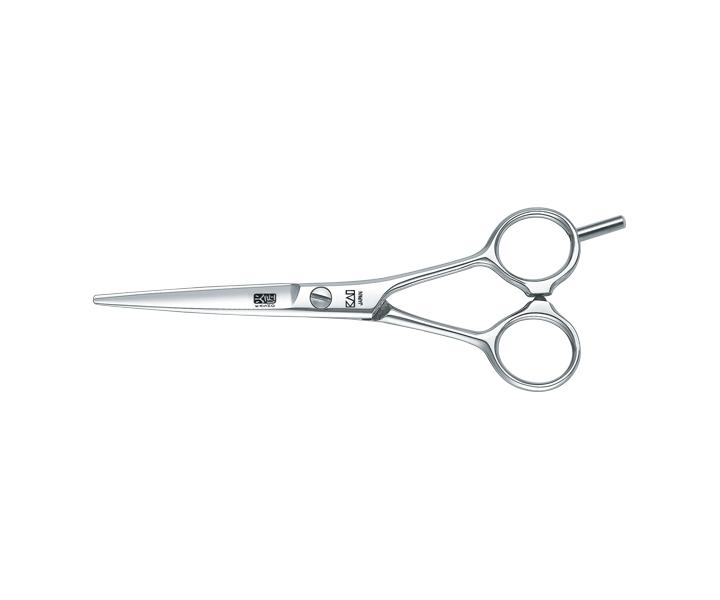Wyjątkowo ostre nożyczki fryzjerskie Kasho z serii Blue są typowym przykładem wszystkich zalet japońskich nożyczek, które są wyposażone w system śrub z płaską główką. Niewielkie rozdzielenie utrzymuje gwint śruby mocno w dolnym ostrzu, umożliwiając precyzyjną regulację napięcia. Konweksowo szlifowane stalowe ostrza są polerowane na lustrzany połysk. Ergonomiczne nożyczki są wykonane ze specjalnego węglika spiekanego, który jest niezwykle wytrzymały.
