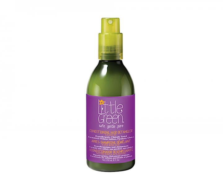 Odżywka dla dzieci bez spłukiwania Little Green Kids Conditioning Hair Detangler w formie delikatnej mgiełki umożliwia błyskawiczne rozczesanie włosów nadając im gładkość, połysk i zdrowy wygląd. Odżywka jest również idealna do ochrony włosów przed słońcem, chlorem i solą. Spray zawiera naturalne składniki, takie jak aloes, pantenol czy gliceryna, które nawilżają, odżywiają i zapobiegają rozdwajaniu się końcówek oraz puszeniu się włosów. Nasadka sprayu pozwala na łatwą aplikację. Skład jest wolny od ftalanów, siarczanów, parabenów i glutenu. Odżywka ma delikatny owocowy zapach.