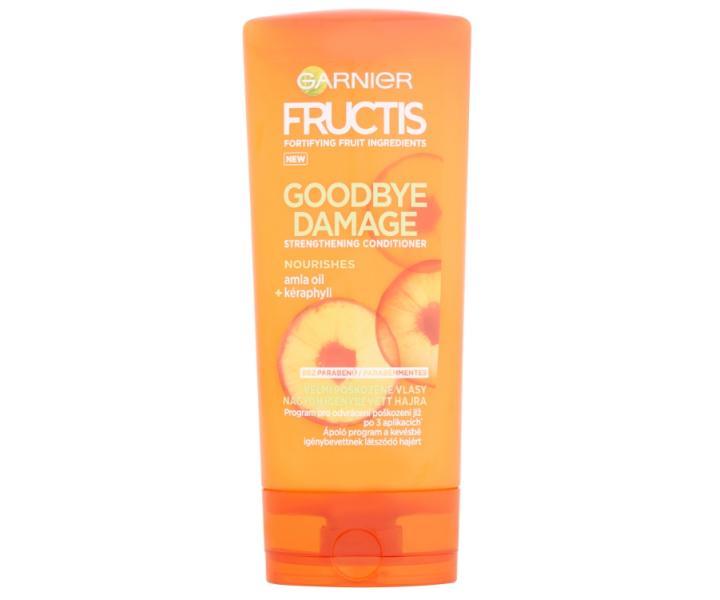 Odżywka Garnier Fructis Goodbye Damage doskonale wzmacnia suche i zniszczone włosy Odbudowuje powierzchnię włosa i wypełnia mikropęknięcia spowodowane pod wpływem agresywnych czynników zewnętrznymi. Formuła wzbogacona o wzmacniający koncentrat owocowy i ekskluzywną kombinację protein z cytryny oraz witamin B3 i B6, pozostawia włosy jedwabiście miękkie, lśniące i pełne życia.