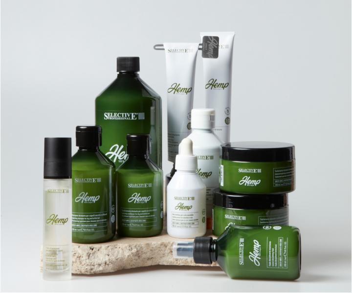 | Seria regenerująca włosy i skórę głowy z olejem konopnym Selective Professional Hemp Rodzaj produktu: zestaw upominkow - szampon + odżywka + kuracja olejoway |