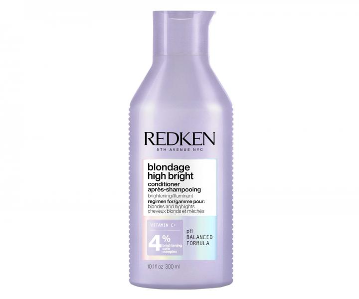 Odżywka Redken Blondage High Bright rozjaśnia włosy blond, które mają tendencję do utraty rozświetlenia i blasku. Dzięki witaminie C i kompleksowi rozjaśniającemu, odżywka rozjaśnia i rozświetla blond włosy. Przywraca włosom utraconą siłę, zdrowie, odżywienie i blask. Eliminuje siwy wygląd włosów i ułatwia ich rozczesywanie. Zamyka łuski włosów i wypełnia porowate włókna włosów. Seria Redken Blondage High Bright jest przeznaczona do zachowania idealnego koloru blond pomiędzy zabiegami koloryzacji.