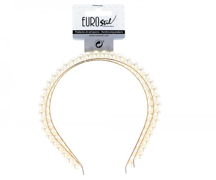 Opaska do w³osów Eurostil Professional w kolorze z³otym ozdobiona per³ami to œwietny dodatek do Twojej fryzury. Opaska jest wykonana z wysokiej jakoœci metalowego materia³u, ³atwo dopasowuje siê do kszta³tu g³owy i mo¿na j¹ wygodnie nosiæ przez ca³y dzieñ bez niewygodnego uciskania. W opakowaniu znajduj¹ siê dwie opaski.