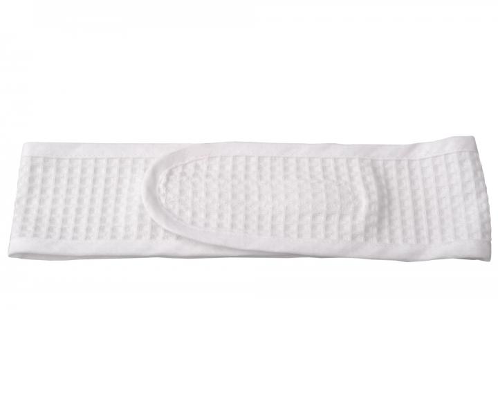 Lekka opaska kosmetyczna MaryBerry Light Waffle z tkaniny o strukturze wafla, może być używana w trakcie zwykłej, codziennej higieny, do nakładania maseczek, kremów lub podczas zabiegów kosmetycznych w domu lub w salonie. Wykonana została wewnątrz w 100% z bawełny. Opaska dobrze trzyma włosy, dzięki zapięciu na rzep i jest przyjemna w dotyku.