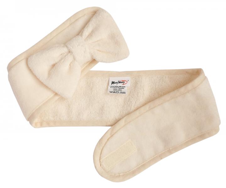 Opaska kosmetyczna MaryBerry Rich & Famous może być używana w trakcie zwykłej, codziennej higieny, do nakładania maseczek, kremów lub podczas zabiegów kosmetycznych w domu lub w salonie. Wykonana została wewnątrz w 100% z bawełny typu frotte o wysokiej gramaturze, zaś na zewnątrz z weluru. Materiał jest trwały, mocny i bardzo chłonny. Opaska dobrze trzyma włosy, dzięki zapięciu na rzep i jest przyjemna w dotyku. Ozdobę opaski stanowi górna kokardka.