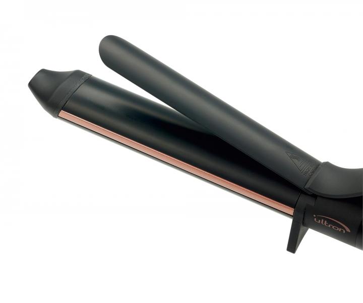 Lokówka do włosów Ultron Ellipse w nowoczesnym designie rose gold tworzy piękne i naturalne fale dzięki owalnemu kształtowi. Nagrzewa się błyskawicznie do 210°C w 30 sekund, a poziom nagrzania można łatwo kontrolować na wyświetlaczu LCD. Lokówka jest wyposażona w izolowaną termicznie końcówkę zapewniającą wygodną i bezpieczną obsługę podczas pracy. Obrotowy o 360°C i długi 3-metrowy kabel sprawiają, że lokówka jest wygodna w obsłudze. Temperaturę można łatwo regulować za pomocą pokrętła w zakresie od 80°C do 210°C, co pozwala dobrać idealną temperaturę do rodzaju włosów. W zestawie znajduje się praktyczna rękawica termoodporna.