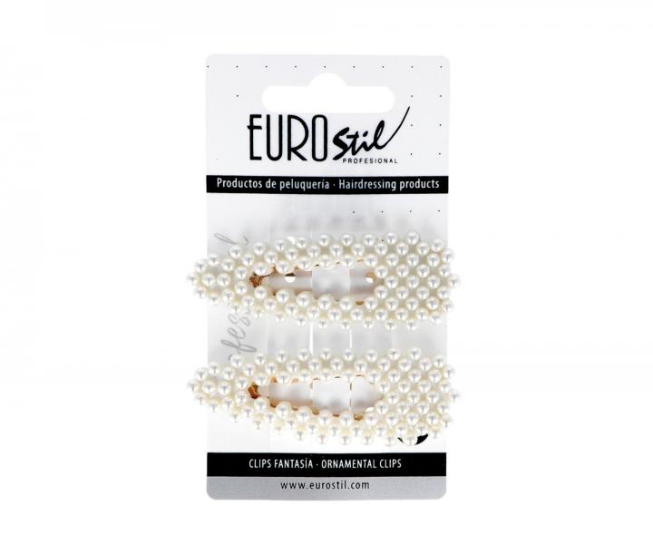 Spinki do włosów Eurostil Professional w kolorze złotym są idealne do mocnego i wygodnego trzymania pasm włosów. Spinki są wysadzane drobnymi perełkami, dzięki czemu nadają się nie tylko dla panny młodej w dniu ślubu, ale także na różne przyjęcia i inne uroczystości. Opakowanie zawiera dwie spinki do włosów.