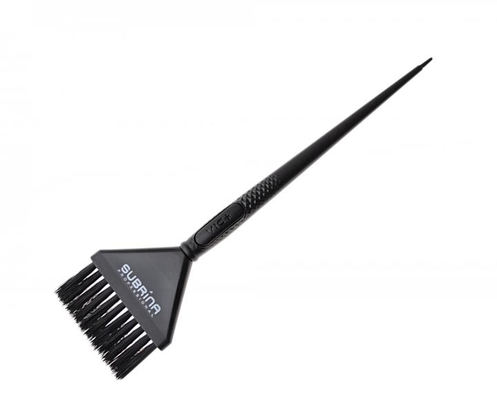 Pędzel Subrina Professional to praktyczny pomocnik do mieszania i nakładania farby podczas farbowania lub robienia pasemek. Pędzel ma 5,5 cm szerokości i jedenaście pęków włosia w jednym rzędzie. Wykonany jest z mocnego i trwałego tworzywa.