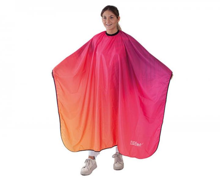 Profesjonalna peleryna fryzjerska do strzyżenia Eurostil Professional zapinana na metalowy haczyk to niezastąpione wyposażenie każdego profesjonalnego salonu fryzjerskiego oraz do strzyżenia w domu. Wykonana została z lekkiego, oddychającego i wodoodpornego poliestru o tęczowym przejściu z pomarańczowego do różowego koloru . Dzięki swojej jakości zapewnia maksymalny komfort i niezawodną ochronę.