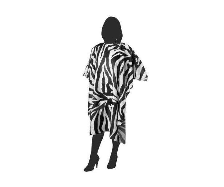 Profesjonalna peleryna fryzjerska Duko 557 zapinana na rzep. Peleryna ma nadrukowany wzór zebry. Kolor: bia³o-czarny Materia³: poliester/tafta Wymiary: 125 x 145 cm