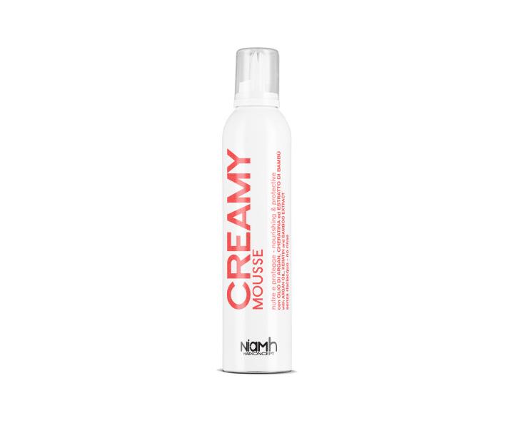 Pianka wzmacniająca do włosów Niamh Creamy zawiera olejek arganowy, ekstrakt z bambusa i keratynę. Olejek arganowy odżywia zniszczone włosy i naprawia rozdwojone końcówki. Keratyna regeneruje i wzmacnia włókno włosa. Ekstrakt z bambusa ma działanie antyoksydacyjne. Pianka nadaje włosom miękkość i połysk.