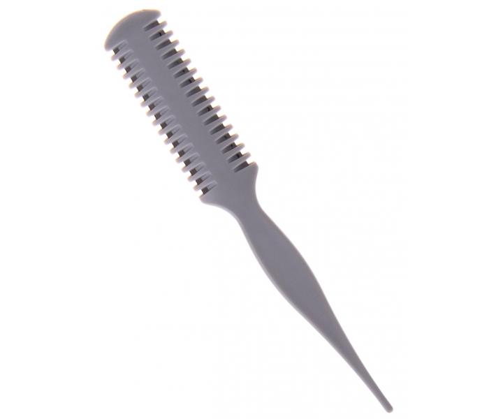Plastikowa brzytwa Sibel do cieniowania włosów. Długość ostrza wynosi 7 cm. Brzytwa jest przeznaczona na dwie klasyczne żyletki, które można łatwo wymienić. Opakowanie zawiera 2 żyletki.