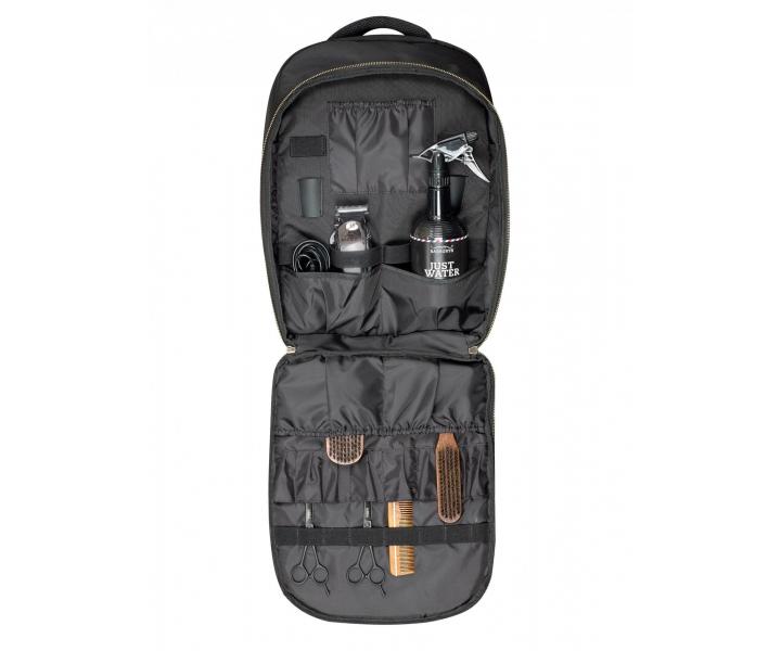Plecak barberski Sibel Barburys Gary na narzędzia i produkty do golenia brody i strzyżenia włosów. Plecak posiada regulowane szelki. Przednia przegroda służy do przechowywania nożyczek, grzebieni, szczotek, maszynek do strzyżenia, brzytew i innych akcesoriów. Tylna przegroda jest przeznaczona na większe narzędzia. Plecak zawiera 2 pokrowce ochronne na akcesoria.