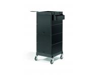 Pomocnik fryzjerski Sibel Discrete w kolorze czarnym to praktyczny i niezastąpiony element wyposażenia salonu fryzjerskiego. Posiada 4 praktyczne szuflady, uchwyt na suszarkę do włosów i praktyczną półkę na narzędzia, którą można powiesić na wózku. Szuflady można zamknąć za pomocą dwóch przesuwnych drzwiczek z magnetycznym mocowaniem. Pomocnik zape... więcej »