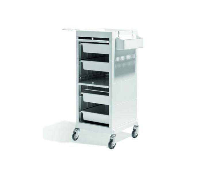 Pomocnik fryzjerski Sibel Discrete w kolorze kremowym to praktyczny i niezastąpiony element wyposażenia salonu fryzjerskiego. Posiada 4 praktyczne szuflady, uchwyt na suszarkę do włosów i praktyczną półkę na narzędzia, którą można powiesić na wózku. Szuflady można zamknąć za pomocą dwóch przesuwnych drzwiczek z magnetycznym mocowaniem. Pomocnik zap... więcej »