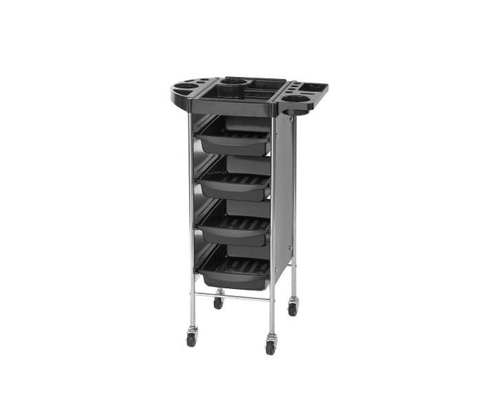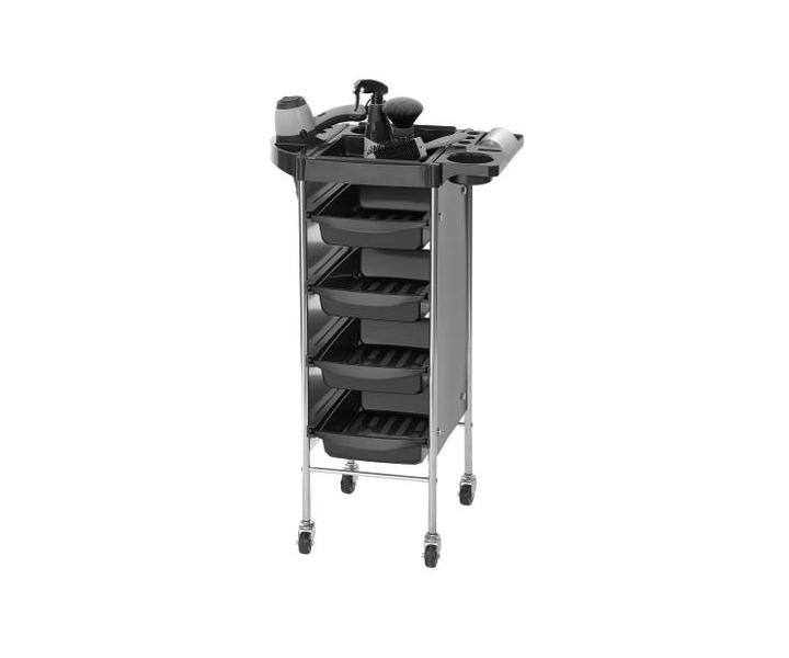 Wózek fryzjerski Original Best Buy Passy z rozkładaną powierzchnią roboczą i czterema szufladami jest bardzo praktyczny i łatwy do czyszczenia. Wózek ma kilka miejsc do przechowywania grzebieni, szczotek, misek i innych akcesoriów fryzjerskich. Wykonany jest z wytrzymałego twardego plastiku połączonego z metalową konstrukcją. Uchwyt jest dobrze wyprofilowany, co ułatwia manipulowanie wózkiem.