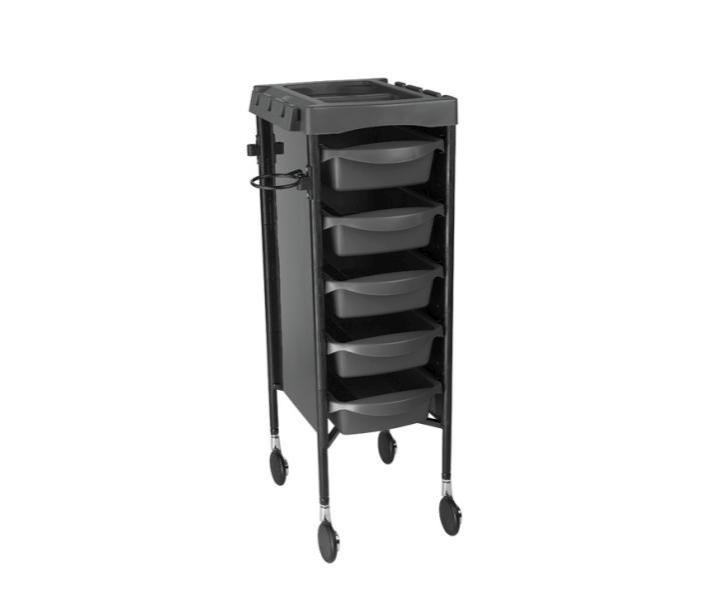 Pomocnik fryzjerski Sibel Milano to praktyczny i niezastąpiony pomocnik w salonie fryzjerskim. Posiada 5 szuflad i uchwyty na narzędzia. Pomocnik gwarantuje wygodę podczas i komfort pracy. Dzięki kółkom możesz przemieszczać wózek w dowolne miejsce.